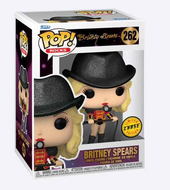 Shine a spotlight on your Pop! Rocks™ collection. Place Pop! Britney Spears, dressed as the ringleader from her “Circus” video, in the center ring and join in on the fun. There’s a 1 in 6 chance you may find the chase of Pop! Britney in her ringleader hat. Vinyl figure is 4.24-inches tall. Please note: Chase variants are shipped at random. Receiving a chase with purchase is not guaranteed.