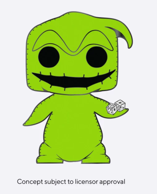 Prepare for some frightful fun with the Oogie Boogie Pop! Pin. With a roll of his glow-in-the-dark dice, Oogie is ready to take a gamble in your The Nightmare Before Christmas collection. Pin has burlap material details, gunmetal-colored hardware, and a built-in stand. The chase variant features Oogie with green glow-in-the-dark enamel fill. Enamel pins are approximately 4-inches tall.