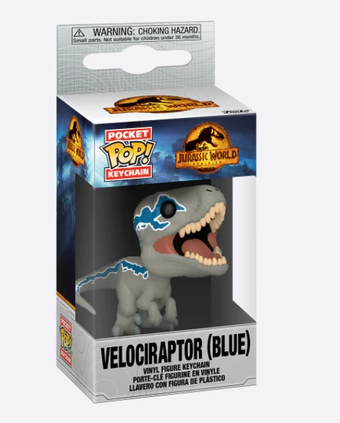 Adventures on a grand scale await with Pocket Pop! Keychain Blue from Jurassic World Dominion. Intelligent, loyal, and affectionate, Pocket Pop! Blue will help you find your keys in the nick of time. Add some excitement to your journeys with Pocket Pop! Keychain Blue. Vinyl keychain is approximately 4-inches long.