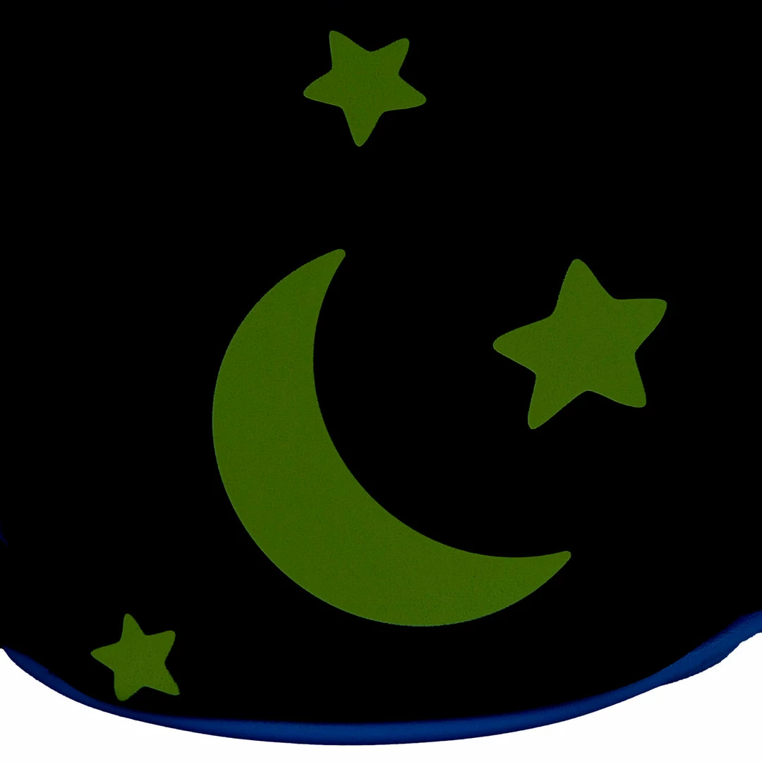 A coin-operated rocket ride provides out-of-this-world adventure for one imaginative duo. Have a blast taking Lilo and Stitch with you as this Lilo & Stitch Space Adventure Glow in the Dark Mini Backpack. On the front of the backpack, Lilo and Stitch have managed to fly to outer space in the coin-operated “Space Adventure” rocket ship. The stars in the background glow in the dark! Lilo is having too much fun to notice that the ride might be a bit much for Stitch to handle. On the back side, planets and stars surround the words “Space Adventure.” In fact, the planet and star glow in the dark.