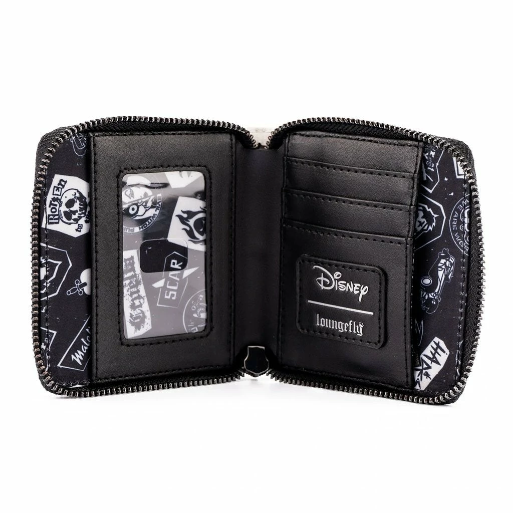 The secret is out! Some of Disney’s most infamous villains have created a club, and you have proof, in Polaroid™ form. With this Loungefly Villains Club Zip Around Wallet, you can keep your valuables safe, while artfully displaying Polaroids™ of the Disney villains in action. Note the coordinating inside lining, with printed detail reminders, such as “bring the fire.” In addition to printed details, this wallet features vegan leather (polyurethane) and applique work.
