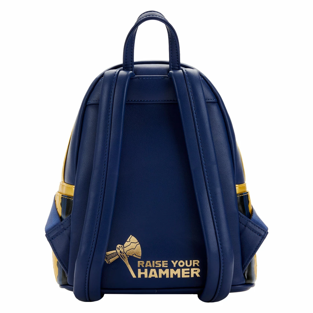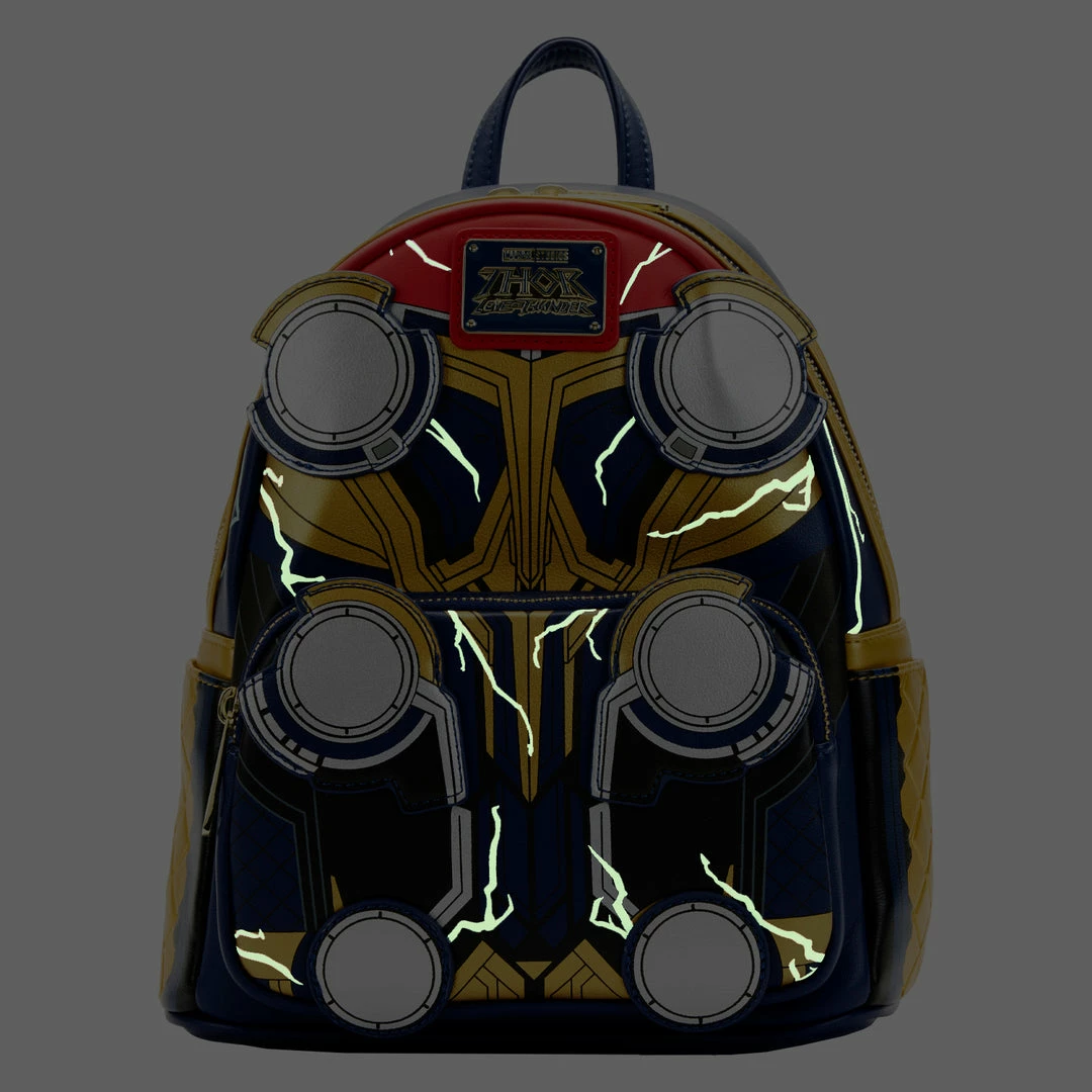 Channel the power of Thor and charge through your day with this Marvel Thor: Love and Thunder Glow in the Dark Cosplay Mini Backpack. Carry this backpack with you to keep your possessions safe, wherever your travels may take you. On the front, Thor’s armor sizzles and glows with lightning. On the back, the message “Raise your hammer,” in gold, recalls the challenge of being worthy of the power of Thor to wield the mighty hammer.