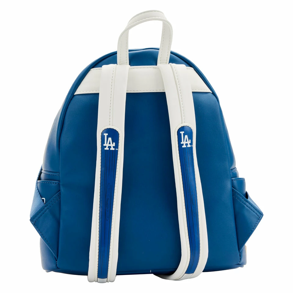 Show your team spirit with an accessory that will knock your Loungefly collection out of the park! The MLB LA Dodgers Patches Mini Backpack is a home run for any Dodgers fan. This blue backpack features sporty embroidered patches along the top and side pockets, while the team’s logo is displayed across the front zipper pocket. An enamel “LA” zipper charm provides easy access to your gameday essentials, and you’ll be swinging for the fences with Dodgers-themed baseball bats on the bag’s shoulder straps. Perfect for holding your peanuts and other ballpark snacks, this mini backpack has plenty of room to carry your gear as you cheer from the sidelines.