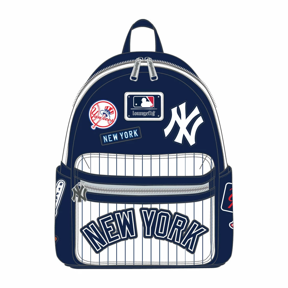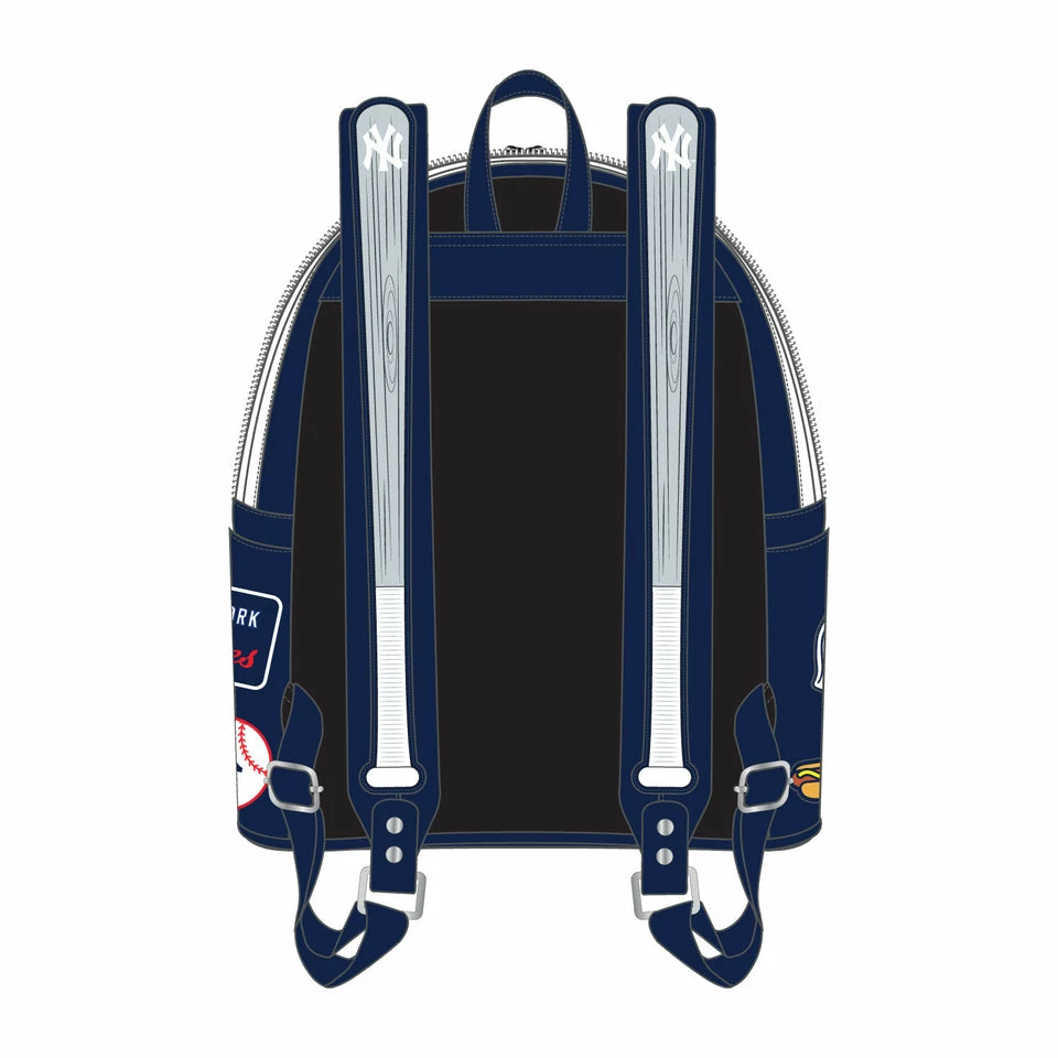 Show your team spirit with an accessory that will knock your Loungefly collection out of the park! The MLB NY Yankees Patches Mini Backpack is a home run for any Yankees fan. This navy-blue backpack features sporty embroidered patches along the top and side pockets, while the team’s logo is displayed across the front zipper pocket. An enamel “NY” zipper charm provides easy access to your gameday essentials, and you’ll be swinging for the fences with Yankees-themed baseball bats on the bag’s shoulder straps. Perfect for holding your peanuts and other ballpark snacks, this mini backpack has plenty of room to carry your gear as you cheer from the sidelines.