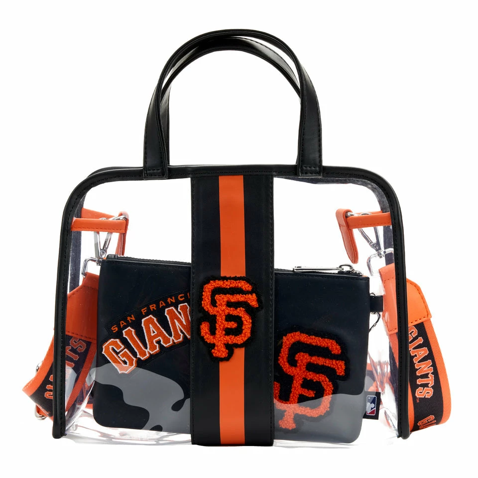 Show your team spirit with an accessory that will knock your Loungefly collection out of the park! The MLB SF Giants Stadium Crossbody Bag with Pouch is a home run for any Giants fan. Made of clear PVC material, this bag is perfect for bringing your gameday essentials into the ballpark. The team’s logo appears on the bag’s center and along the black, adjustable strap. Featuring sporty embroidered patch details, the inner detachable zipper pouch has plenty of room to hold your important items. This multi-functional bag provides a stylish way to transport your gear as you cheer on your team from the sidelines.