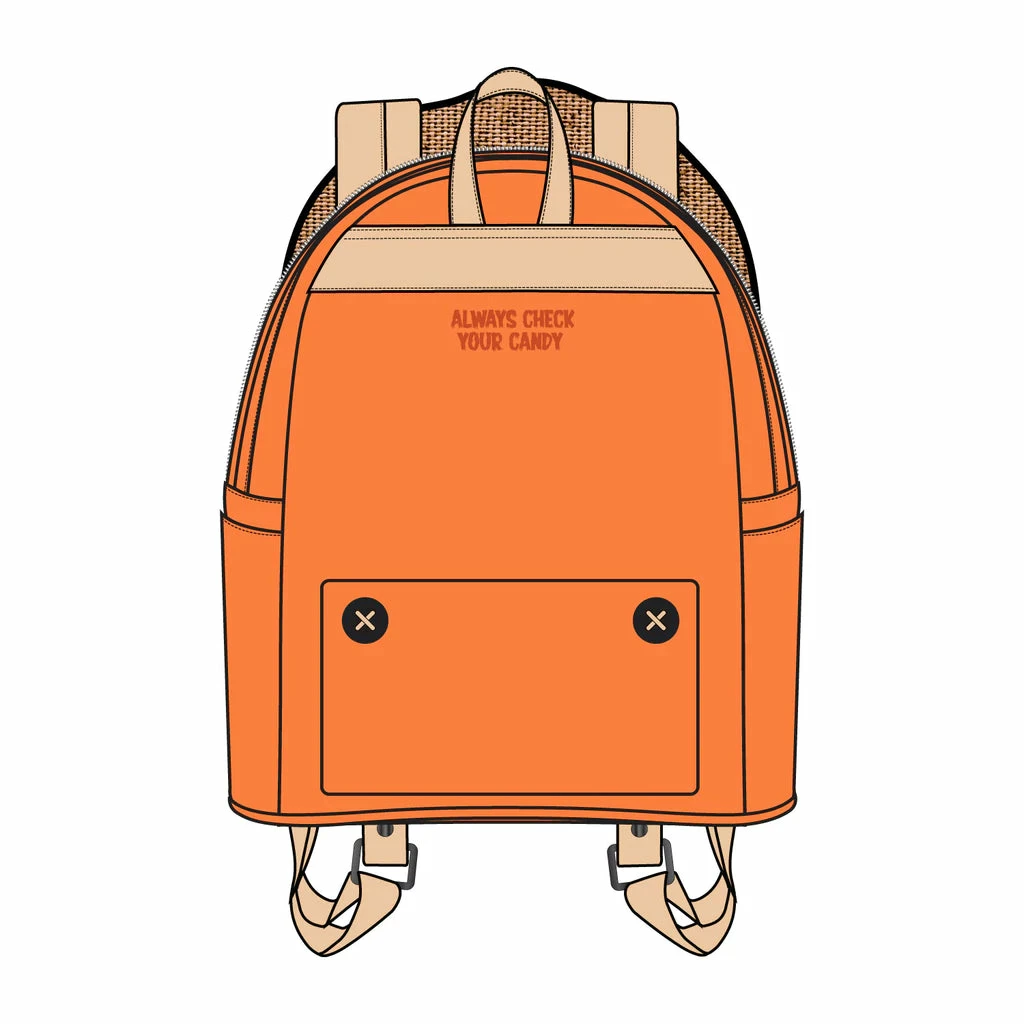 Keep the jack-o’-lanterns lit! Sam, from Trick ‘r Treat, is coming to enforce the rules of Halloween as this Loungefly Trick ‘r Treat Sam Cosplay Mini Backpack. On the front of this backpack, Sam comes to life in applique and burlap detail. A zipped compartment, near the tied loop around Sam’s neck, opens and closes with a clear resin lollipop charm pull. On the back, the message “Always check your candy” serves as a reminder to stock up on chocolate and add a thrill to your adventures. It’s the perfect accessory for trick-or-treating—or any fun outing you have planned.